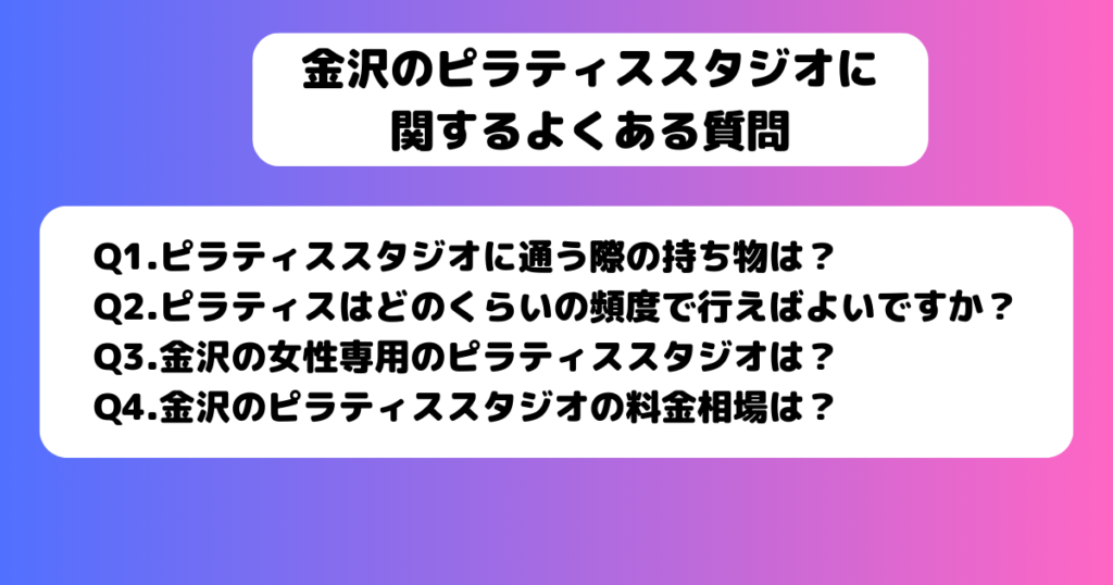 金沢のピラティススタジオに関するよくある質問
